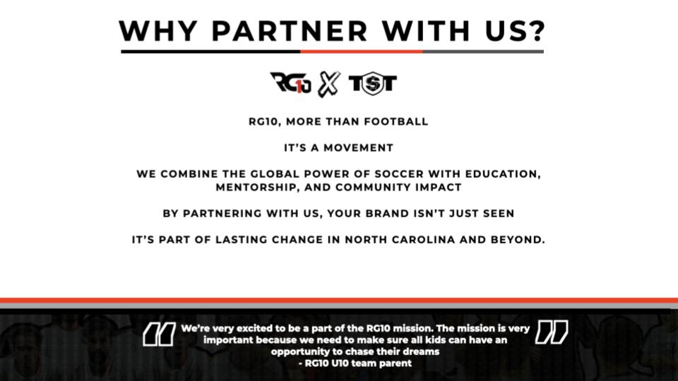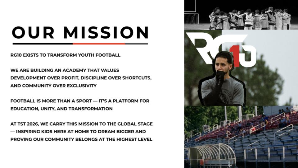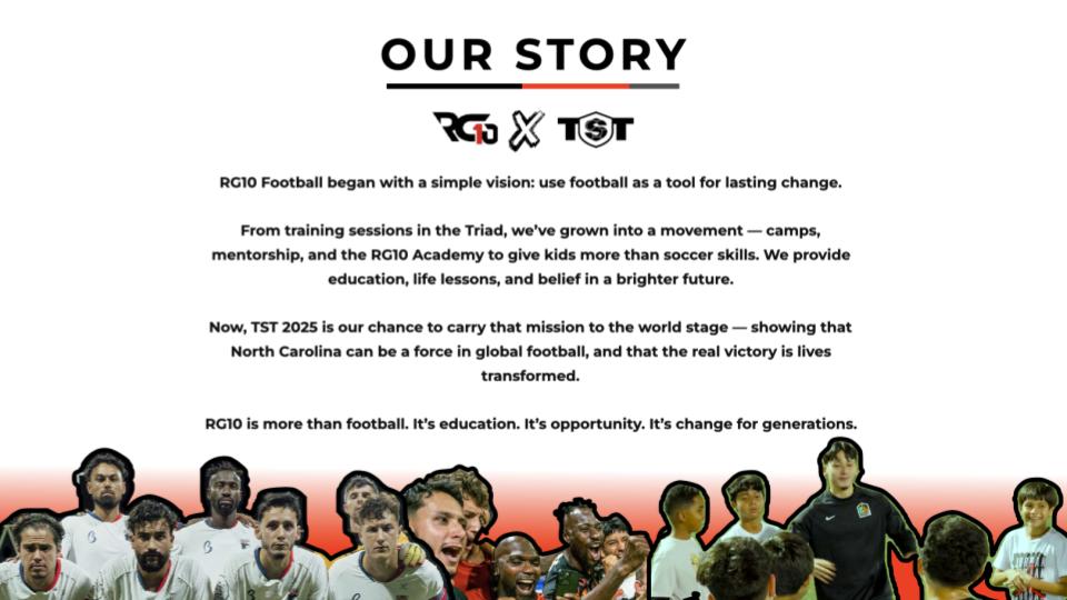 Now, at TST 2026, we take our mission to the world stage. Representing North Carolina, RG10 will showcase that true victory is not just about trophies, but the lives transformed through football.